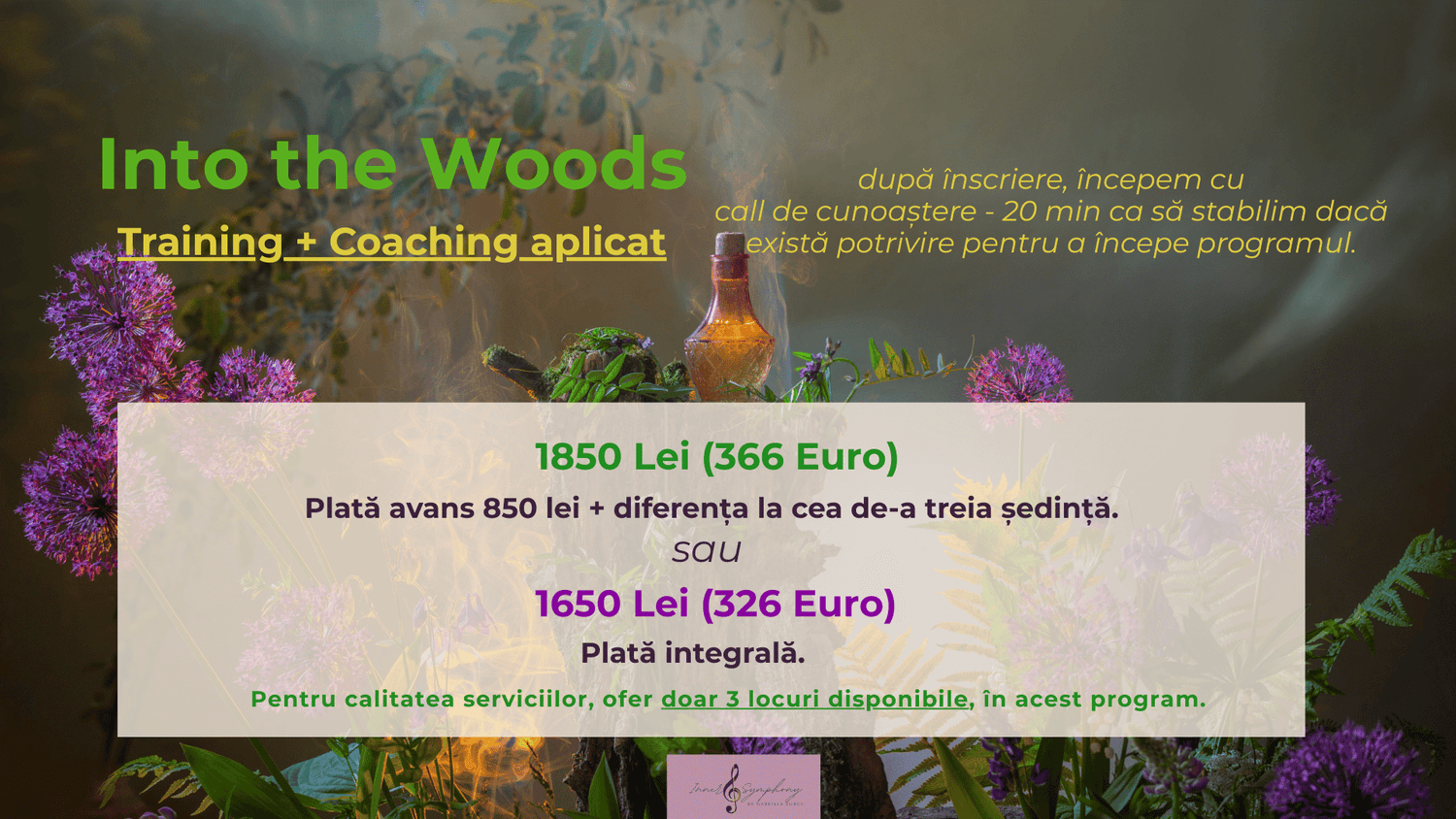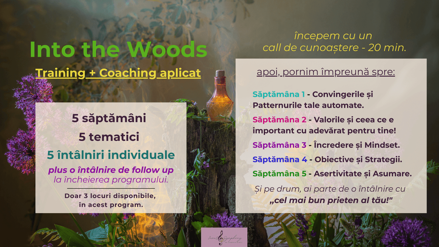 Into the Woods este un drum de transformare, ghidat pas cu pas, care îți aduce claritate, încredere și strategii concrete ca să te îndrepți spre viața pe care ți-o dorești.